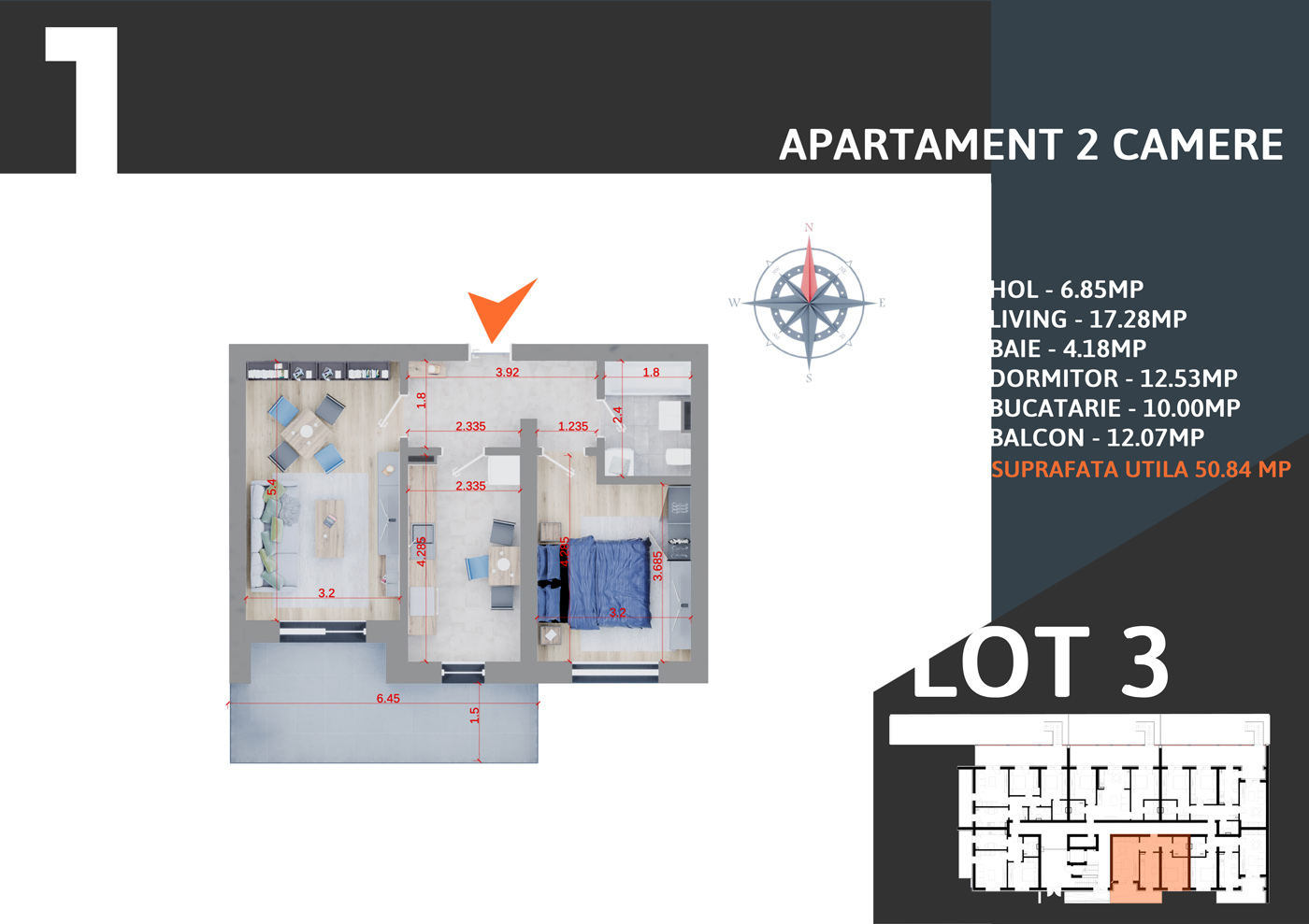Apartament 2 camere nr. 01 - Bloc 3 - Atena Residence