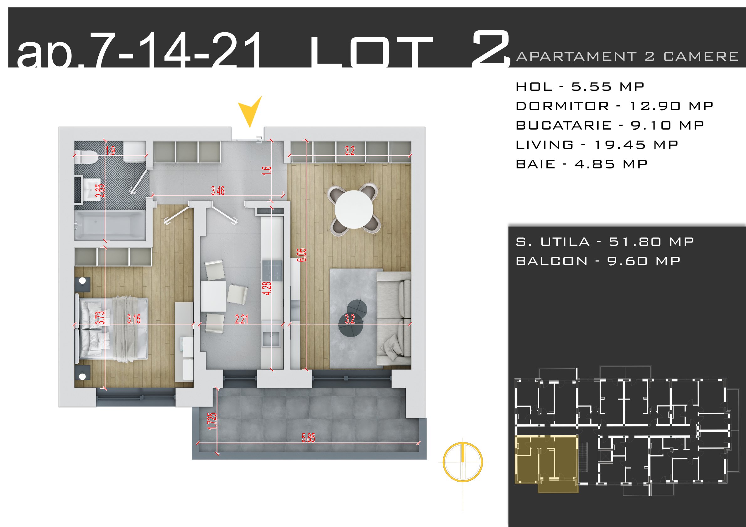 Apartament 2 camere nr. 14 - Lot 2 - Atena Residence